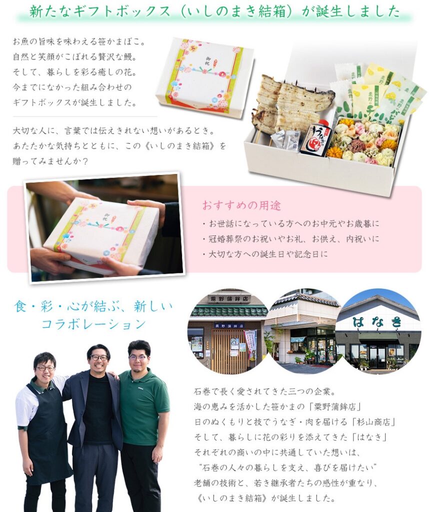 粟野蒲鉾店様、はなき様コラボ《いしのまき結箱》の販売開始について